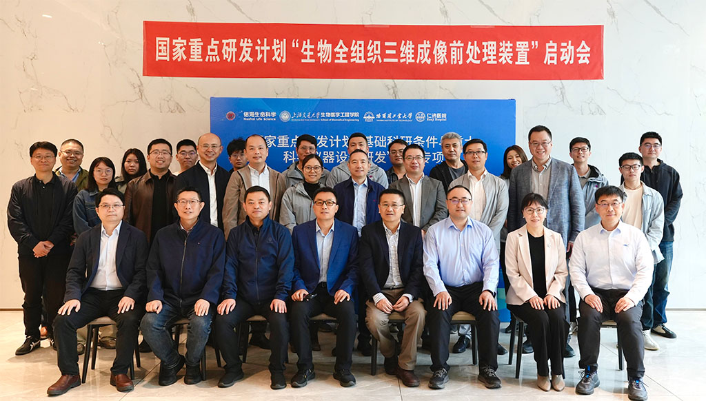 2025 年 4 月 12 日,由锘海生物科學(xué)儀器 (上海) 有限公司牽頭、上海交通大學(xué)生物醫(yī)學(xué)工程學(xué)院、哈爾濱工業(yè)大學(xué)、仁濟醫(yī)院共同承擔(dān)的國家重點研發(fā)計劃 “基礎(chǔ)科研條件與重大科學(xué)儀器設(shè)備研發(fā)” 重點專項 —“生物全組織三維成像前處理裝置(2024YFF0728200)” 項目啟動暨實施方案論證會在上海市松江區(qū)順利舉行。