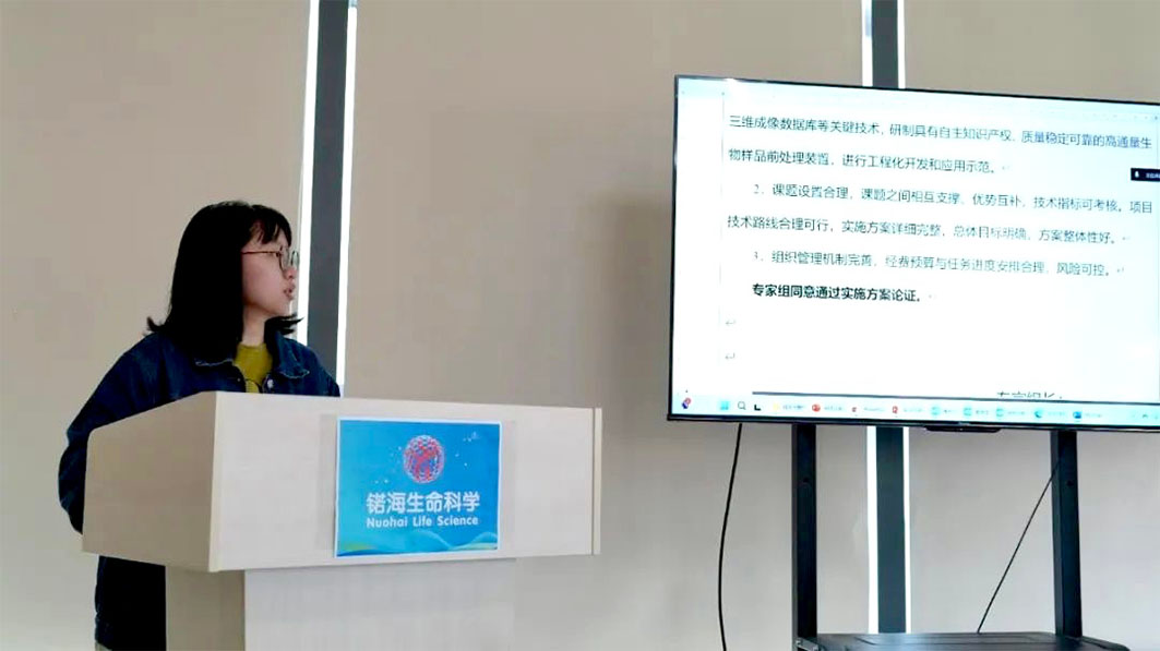 隨后,參會專家還實地參觀了锘海生物在生物全組織三維成像前處理裝置相關(guān)技術(shù)與成果,增強了對項目研發(fā)基礎(chǔ)的直觀認識。之后,項目負責(zé)人圍繞項目實施方案,從研究背景、目標、技術(shù)路線、任務(wù)分工、進度安排等方面進行詳細匯報,為項目推進提供清晰規(guī)劃。