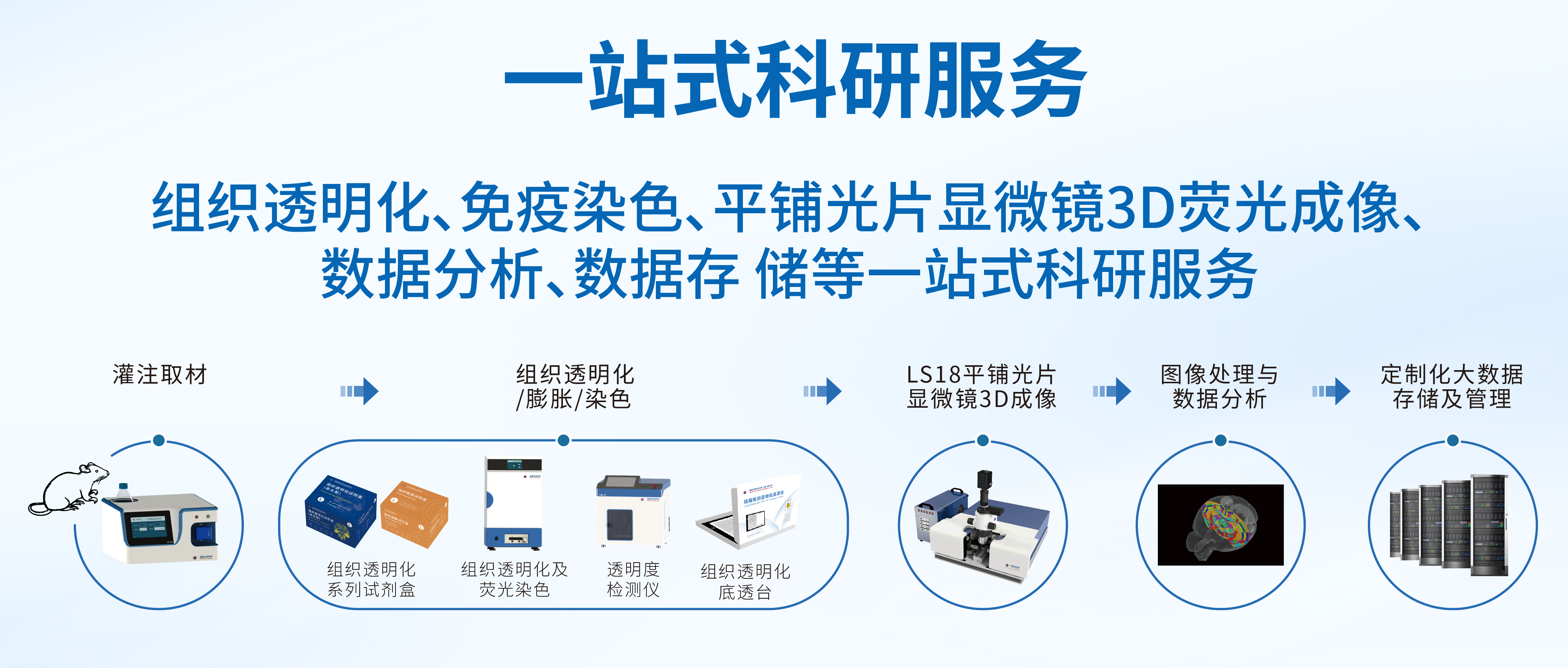 锘海生命科學(xué)搭建了一站式服務(wù)平臺,為廣大客戶提供專業(yè)的灌注取材、組織透明化熒光染色、平鋪光片顯微鏡3D熒光成像、數(shù)據(jù)分析、數(shù)據(jù)存儲等一站式科研服務(wù),旨在通過精細、快速、多樣化的科研服務(wù)為每一位生命科學(xué)工作者提供個體化/定制化的解決方案。