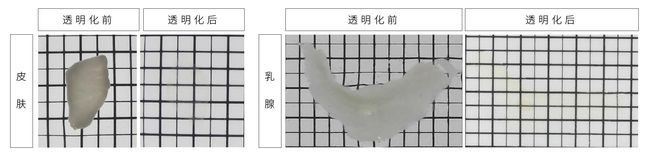 成年小鼠皮膚、乳腺透明前后對(duì)比圖