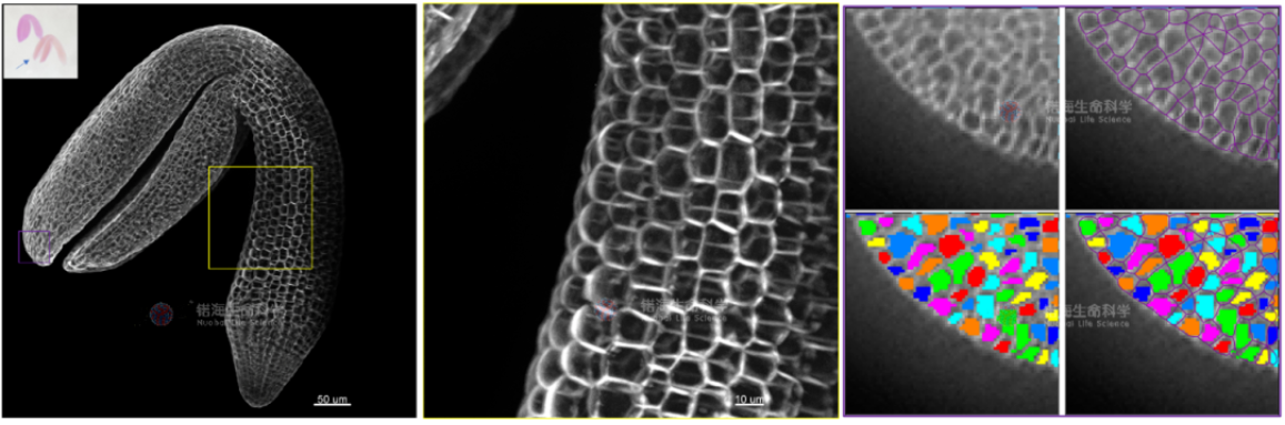 圖6. 植物細(xì)胞分割后可進(jìn)行細(xì)胞個(gè)數(shù)及面積等指標(biāo)的定量分析