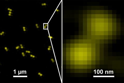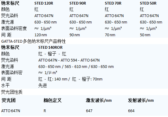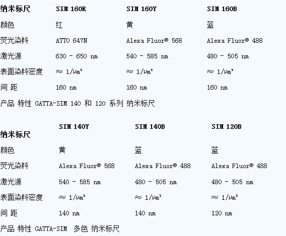 GATTA-SIM系列的納米標(biāo)尺可以用于檢測您的SIM系統(tǒng)的分辨率。該納米標(biāo)尺帶有兩個(gè)熒光標(biāo)記,這些熒光標(biāo)記都是來自于密集排列的高量子效率的染料分子。兩個(gè)熒光標(biāo)記之間的距離固定,尺寸包括120nm,140nm和160nm。我們?yōu)槟峁в幸韵骂伾牟煌叽绲募{米標(biāo)尺,包括:紅色(ATTO 647N),黃色(Alexa Fluor 568)或藍(lán)色(Alexa Fluor 488)。